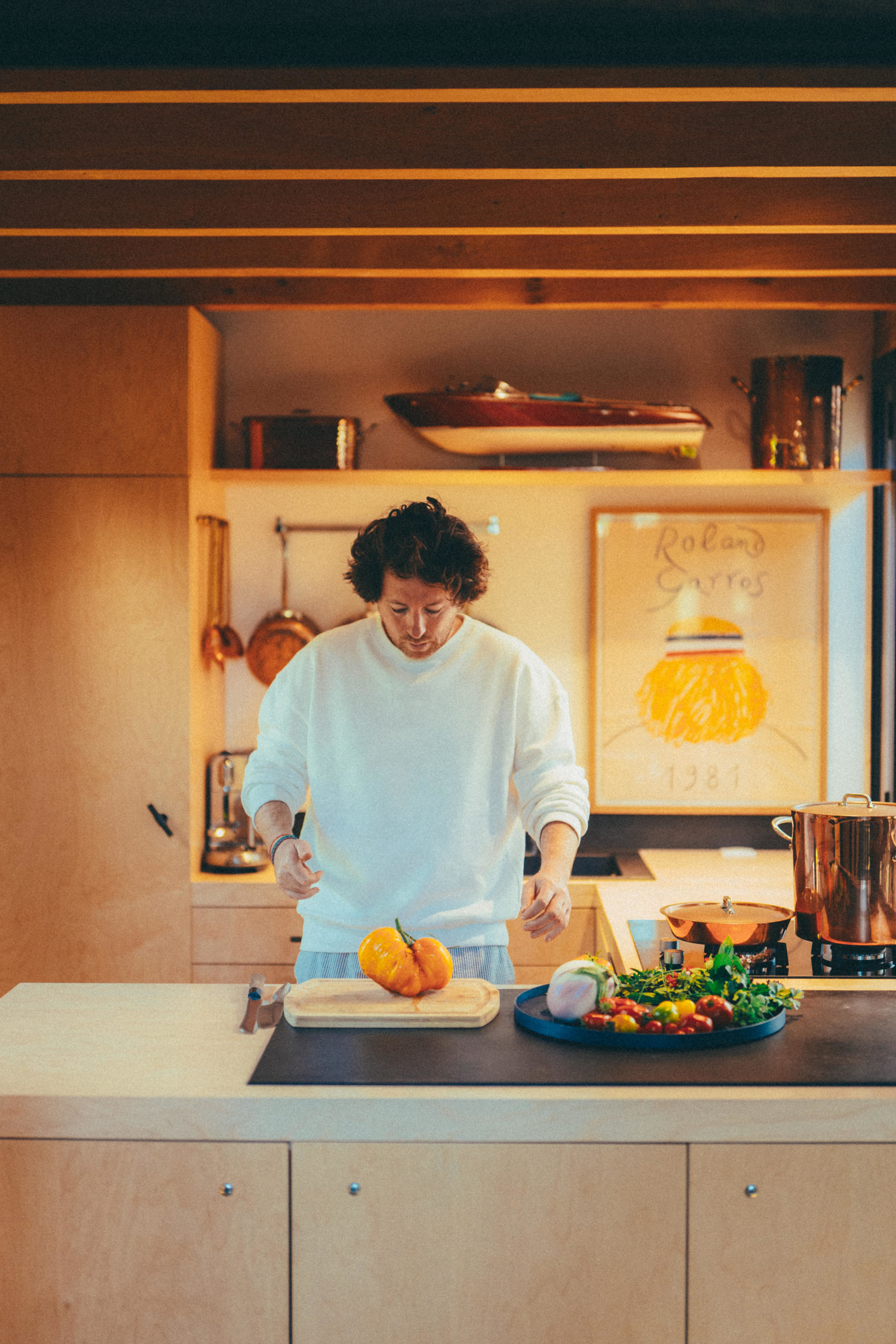 Le chef a réalisé son rêve d’enfance : construire une cabane écologique nichée au milieu des arbres. Une bulle inondée par la douce lumière bretonne et agrémentée d’un potager biologique.