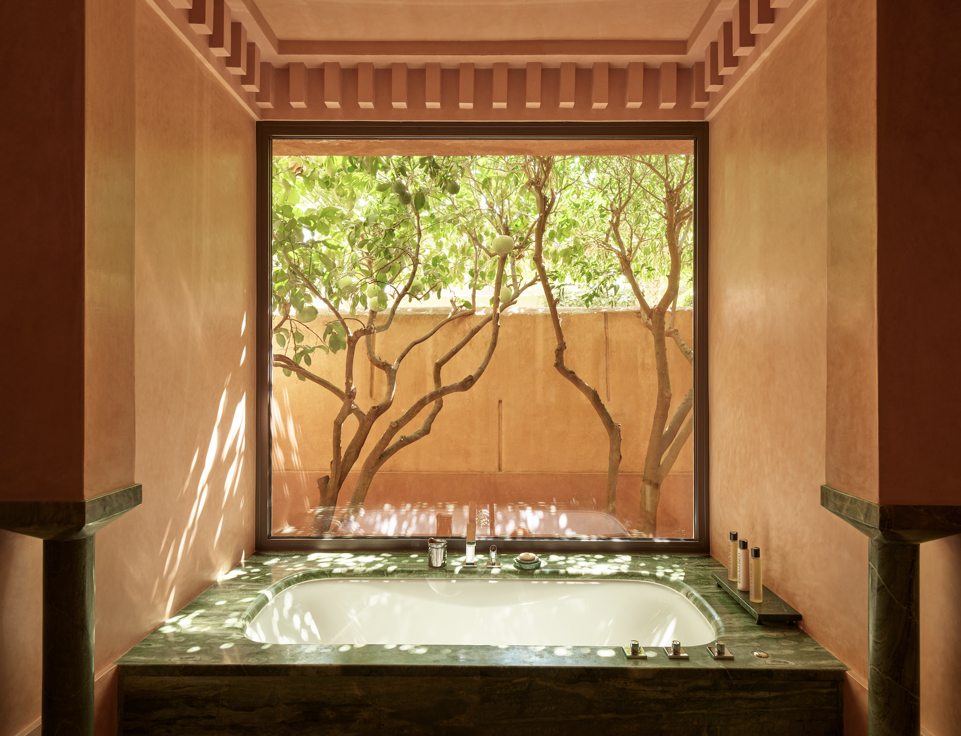 villages berbères du Haut Atlas. Datant du XIIe siècle, la propriété a été conçue par Ed Tuttle, l’un des architectes fétiches du Groupe Aman. Ce 5* installé au cœur de la palmeraie de Marrakech est une véritable oasis de fraîcheur.