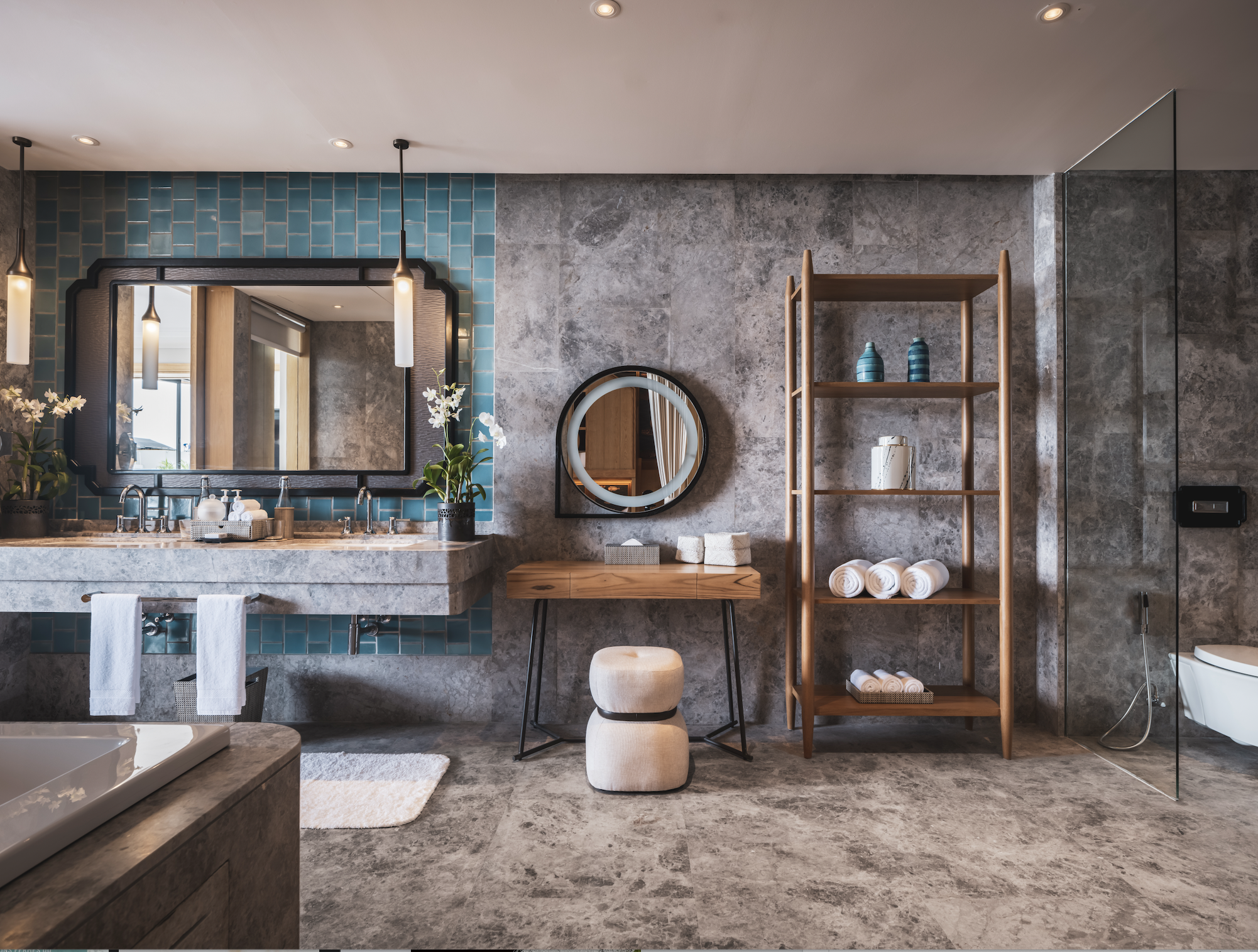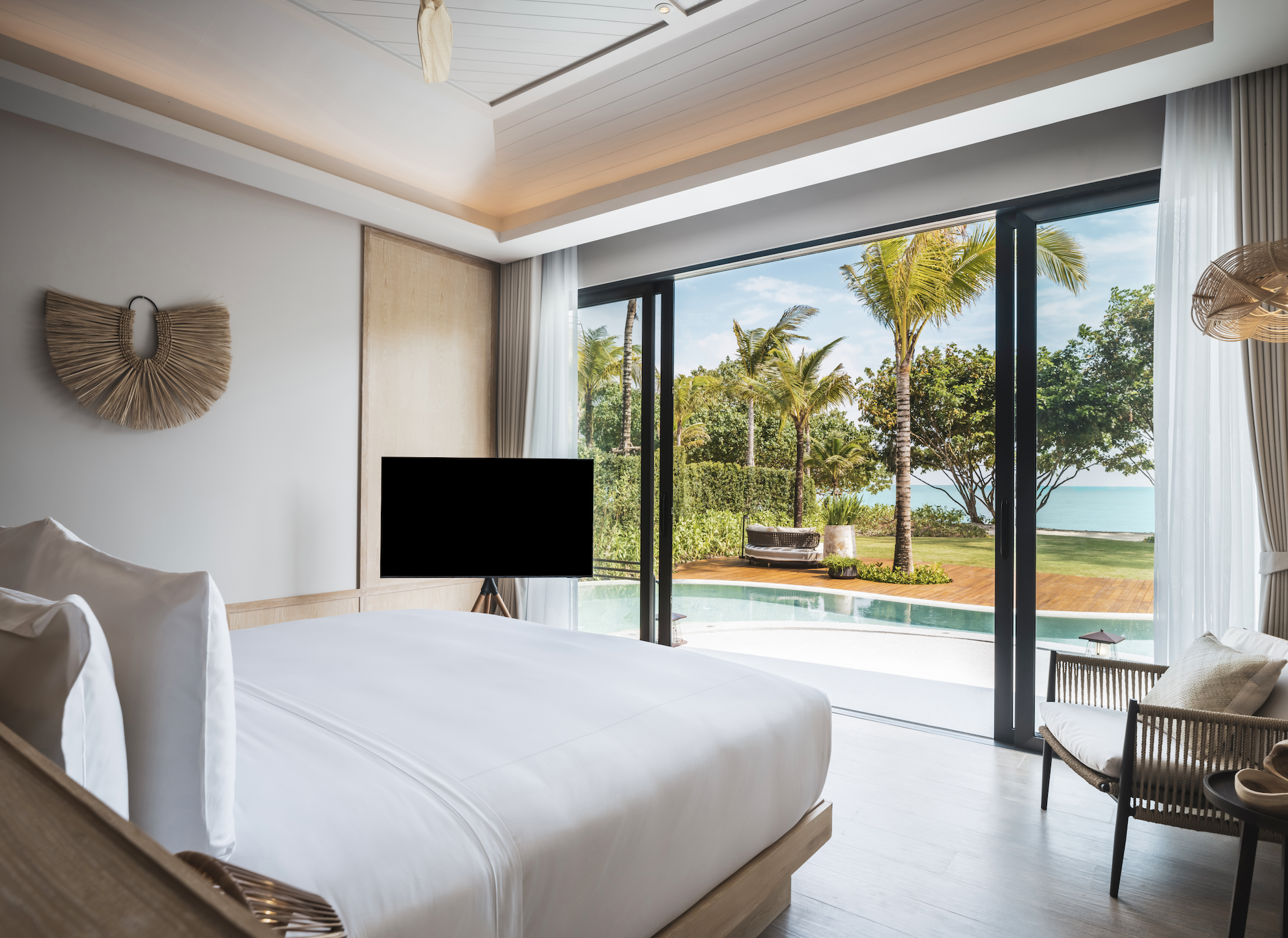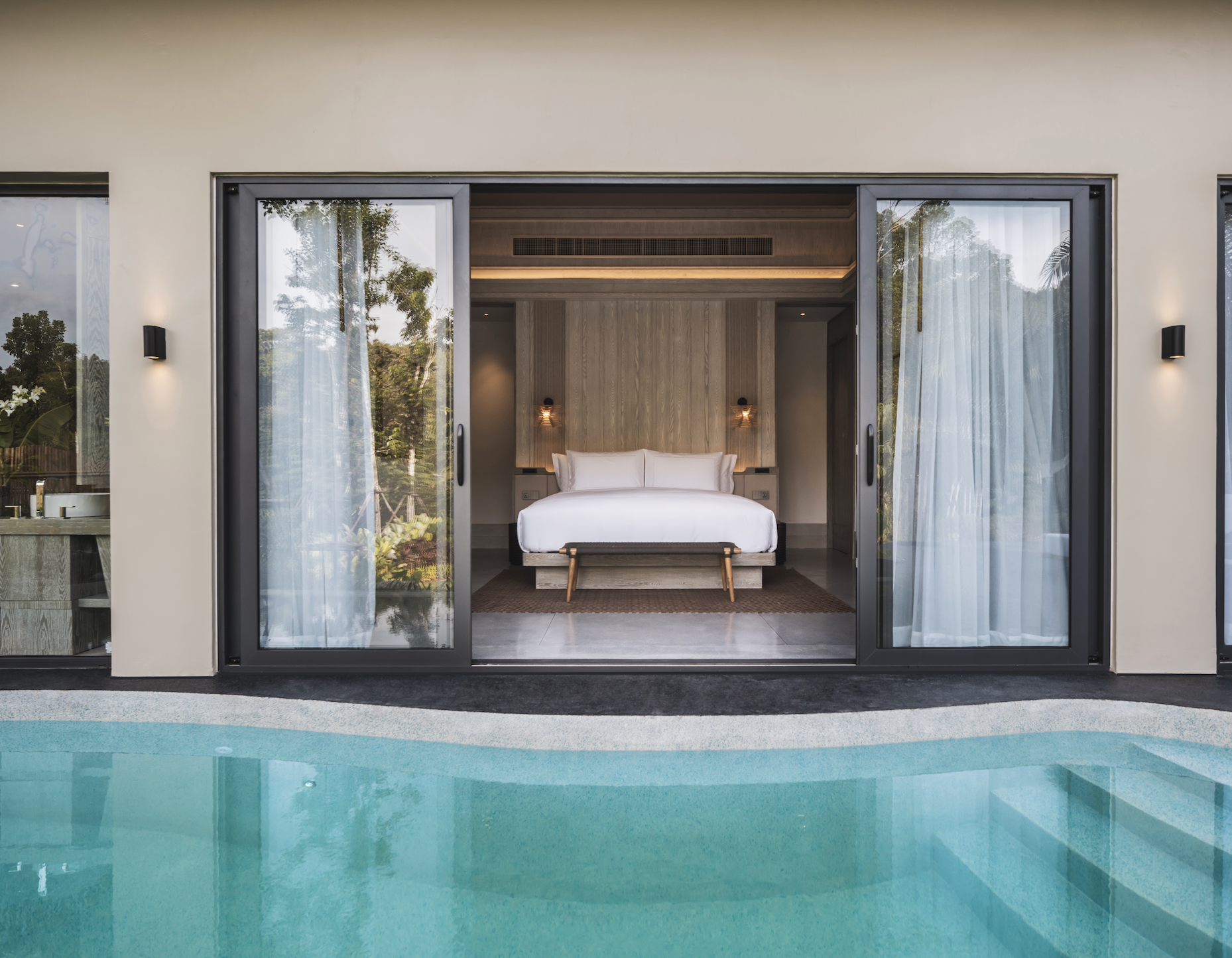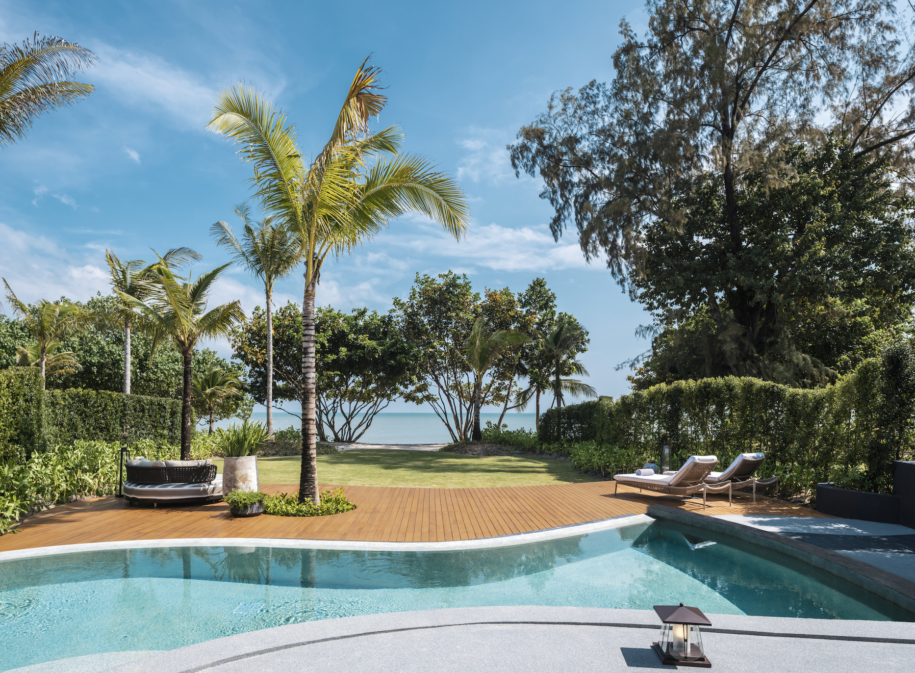 - La Lagoon Pool Villa et la Beachfront Pool Villa, chacune offrant une surface entre 170 et 200 m², avec une chambre.