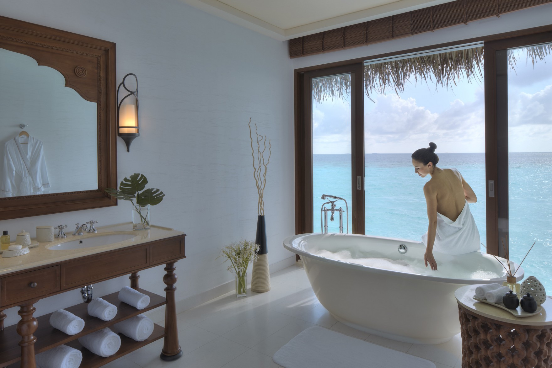 Conçu dans le respect de son environnement luxuriant, l’établissement se compose de 173 villas en front de mer et sur pilotis. Toutes allient l’esthétique maldivienne traditionnelle à une décoration moderne et épurée. Chacune des villas comprend une terrasse avec piscine privée et vue panoramique sur l’océan Indien.