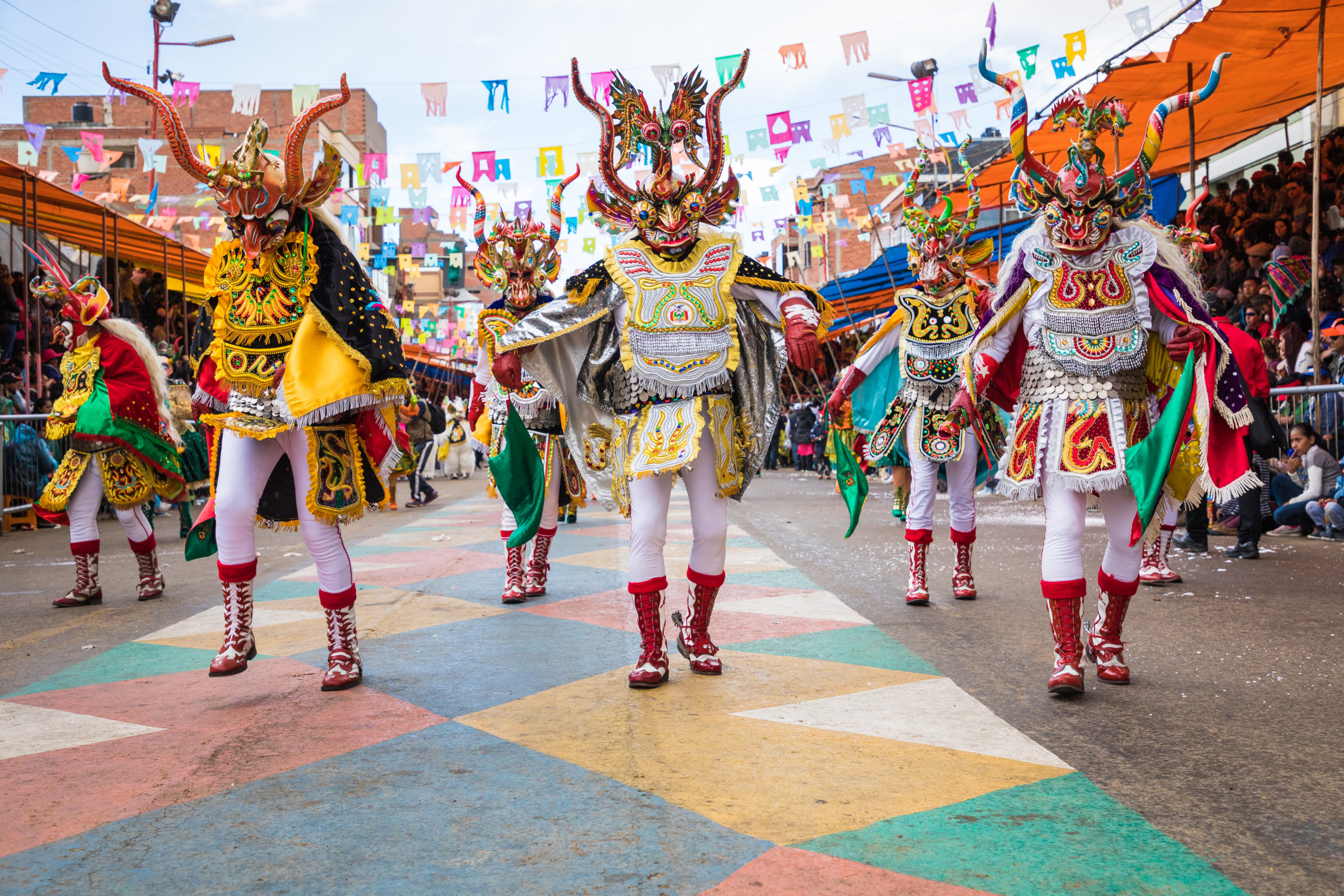 Le carnaval d’Oruro (Bolivie) était autrefois une célébration indigène. Aujourd’hui encore, il célèbre Pachamama (la Terre Mère) et Tio Supay (le Dieu du monde souterrain). De nombreux défilés sont organisés, mettant chacun en scène des mythes, légendes et traditions boliviennes. Par exemple, les touristes y découvrent le rituel ancestral de la « danse des démons » : La Diablada, qui représente la victoire du bien contre le mal. Cette année, le carnaval d’Oruro aura lieu du 11 au 21 février.