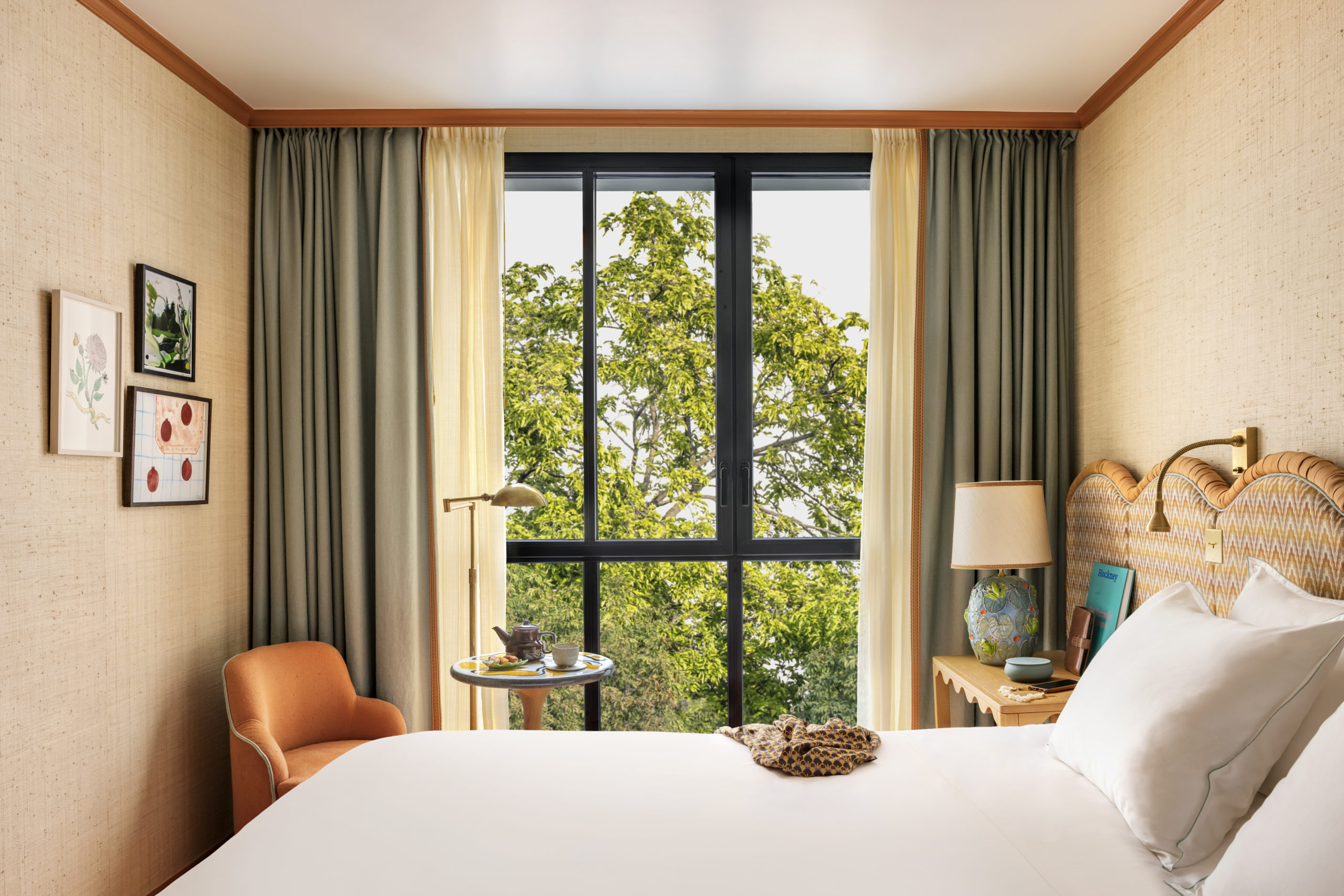 L’hôtel La Fantaisie ouvrira ses portes en avril 2023, au 24 rue Cadet (Paris 9ᵉ). À l’image du grand jardin intime de l’hôtel, les 63 chambres et 10 suites sont des échappatoires à la ville. Certaines ont même des balcons ou terrasses ! L’intégralité de l’établissement doit son style élégant et décalé au designer Martin Brudnizki. Couleurs solaires et tendres, papier peint végétal, ambiance bucolique… L’énergie y est à la fois vibrante et détendue. La déconnexion ? On la trouve aussi au sein du Spa Holidermie ou sur le rooftop arboré, dont la vue sur les toits de Paris est grandiose.