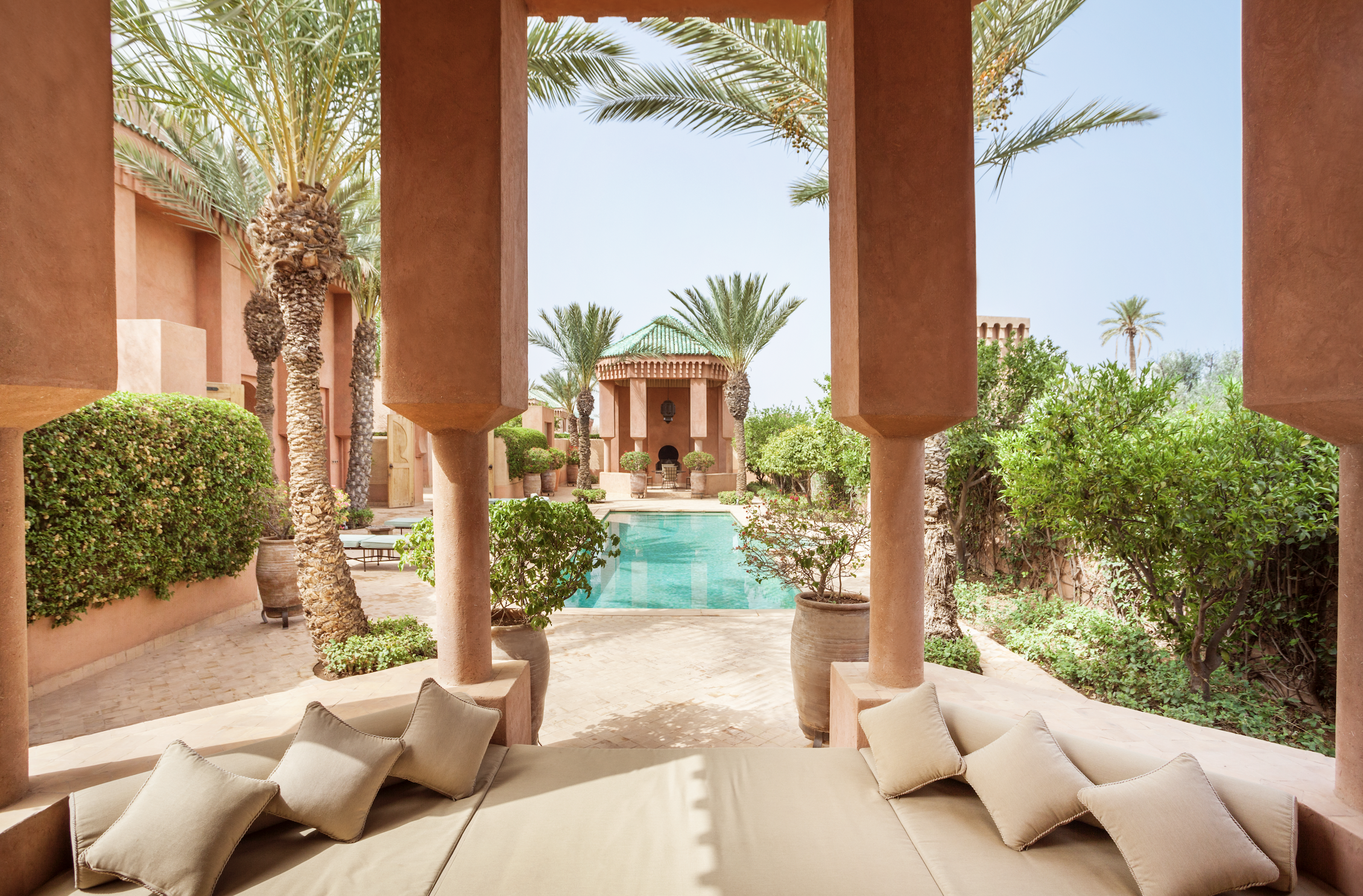 villages berbères du Haut Atlas. Datant du XIIe siècle, la propriété a été conçue par Ed Tuttle, l’un des architectes fétiches du Groupe Aman. Ce 5* installé au cœur de la palmeraie de Marrakech est une véritable oasis de fraîcheur.