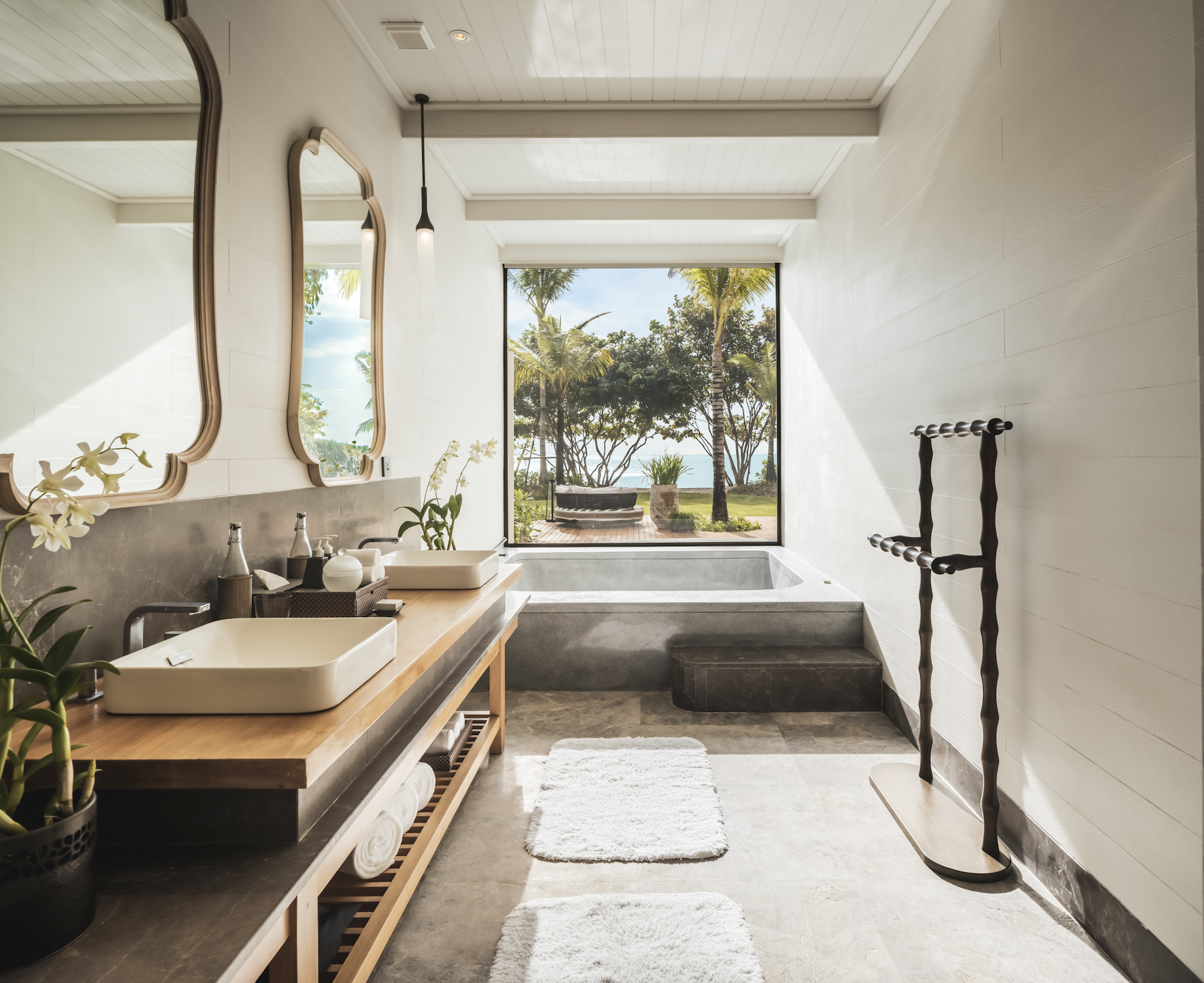 - La Lagoon Pool Villa et la Beachfront Pool Villa, chacune offrant une surface entre 170 et 200 m², avec une chambre.
