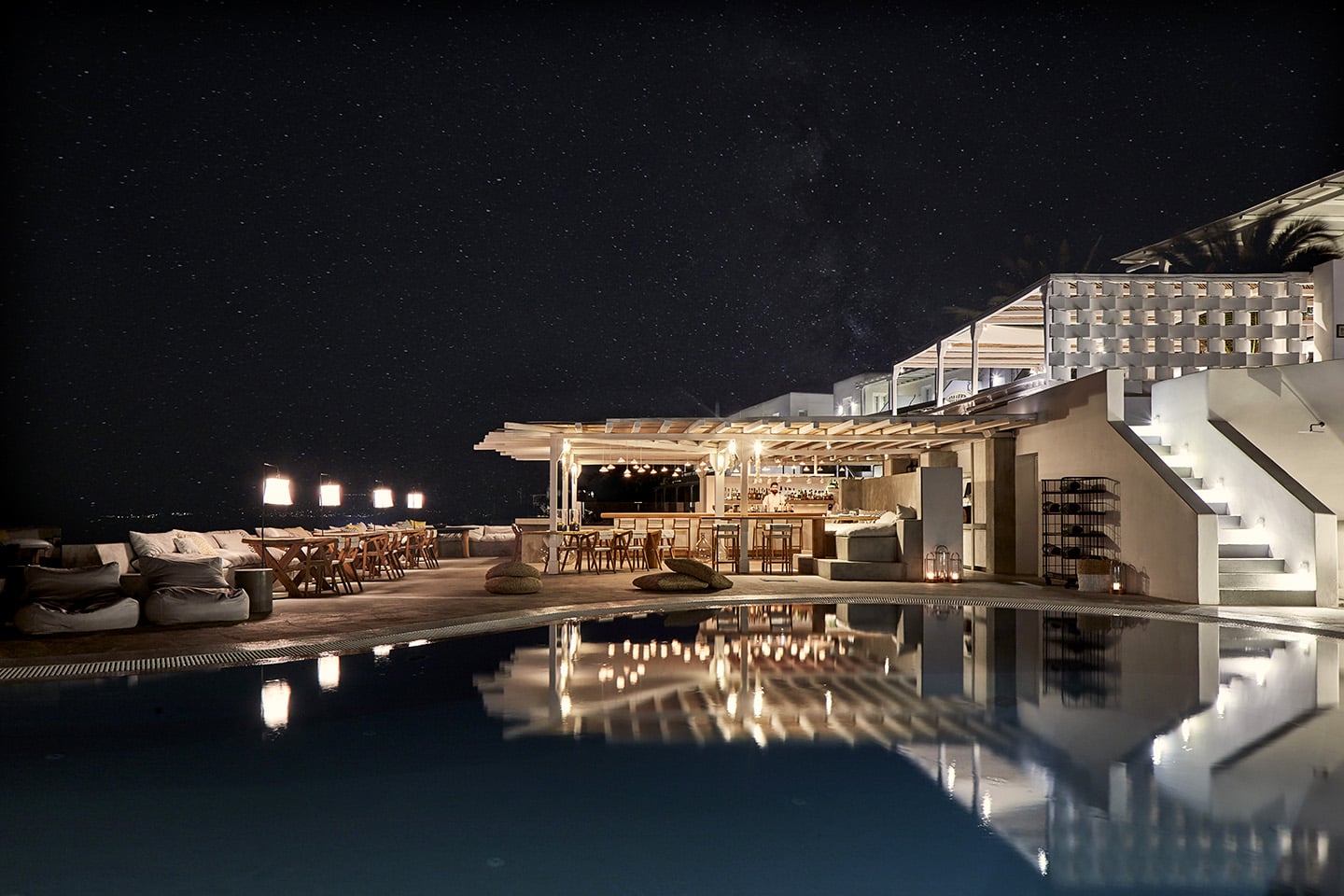 Côté hébergement, le Boheme Mykonos accueille les voyageurs dans une vingtaine de suites à l’ambiance évidemment bohème-chic. Décoration épurée et design, couleurs douces, matières naturelles et formes fluides sont à l’honneur. Un environnement relaxant et chaleureux qu’on retrouve sur la terrasse (dont la vue est époustouflante), autour de la piscine ou au Bilo Bar Restaurant.