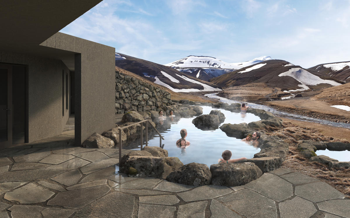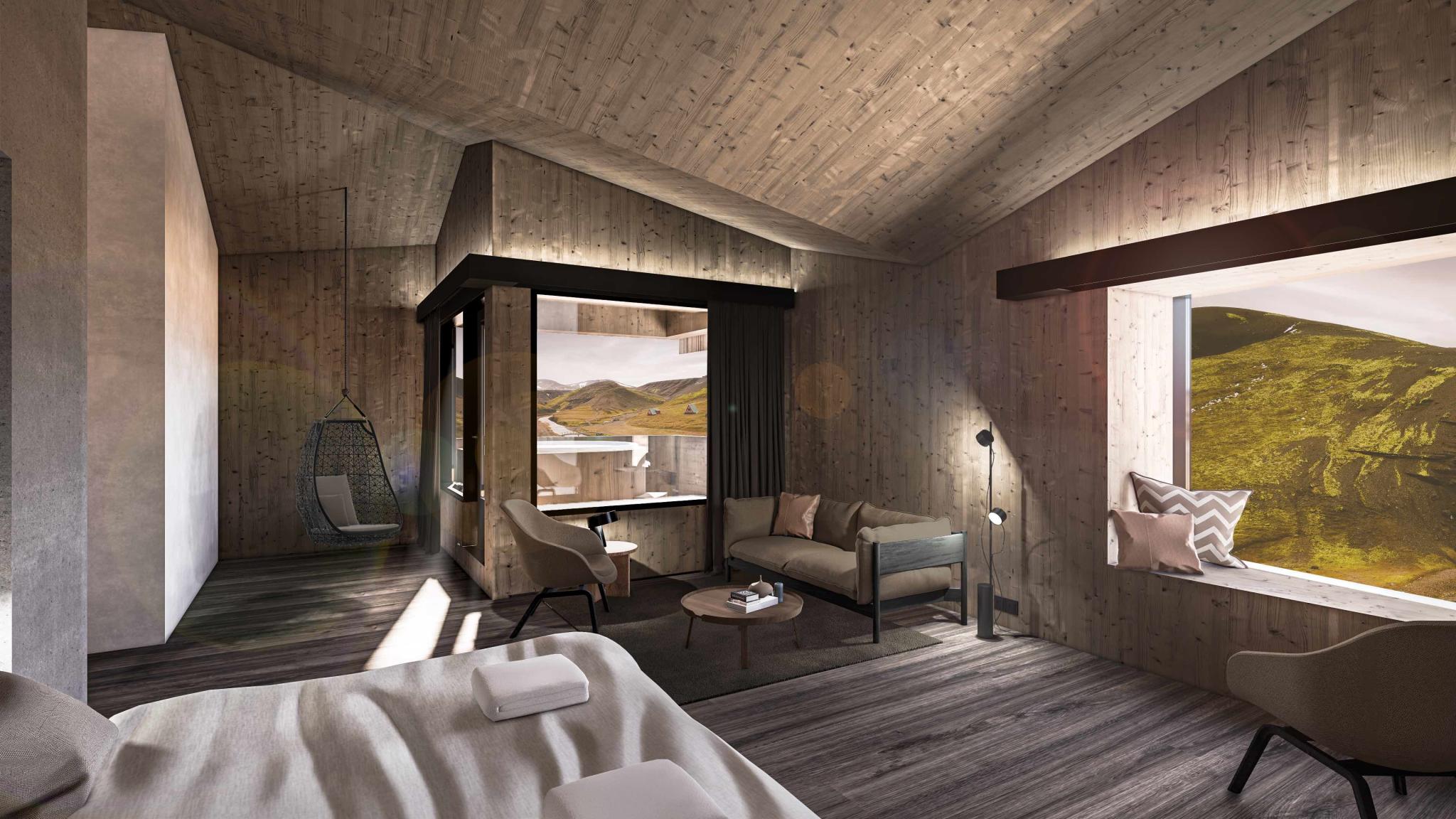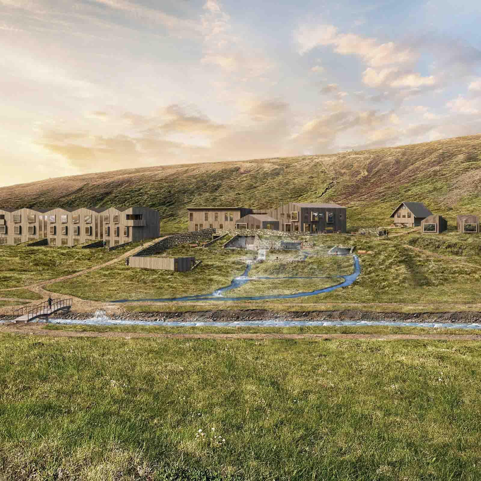 L’ouverture de cet établissement est prévue cet été, et le moins que l’on puisse dire, c’est qu’aucun des futurs clients du resort ne risque de s’ennuyer ! Du logement le plus basique au grand luxe, Kerlingarfjöll Mountain Resort a tout en magasin. Dans le bâtiment principal, le Higland Base Hotel, sont proposées des chambres Deluxe et de belles Suites. Dans l’aile « Heritage », se trouvent des chambres doubles et familiales pour les groupes. Le bâtiment se dresse face à la rivière et aux montagnes. Juste à côté, il y a le restaurant du resort, l’emplacement des bains, prévus pour octobre 2023, et les lodges de l’hôtel.