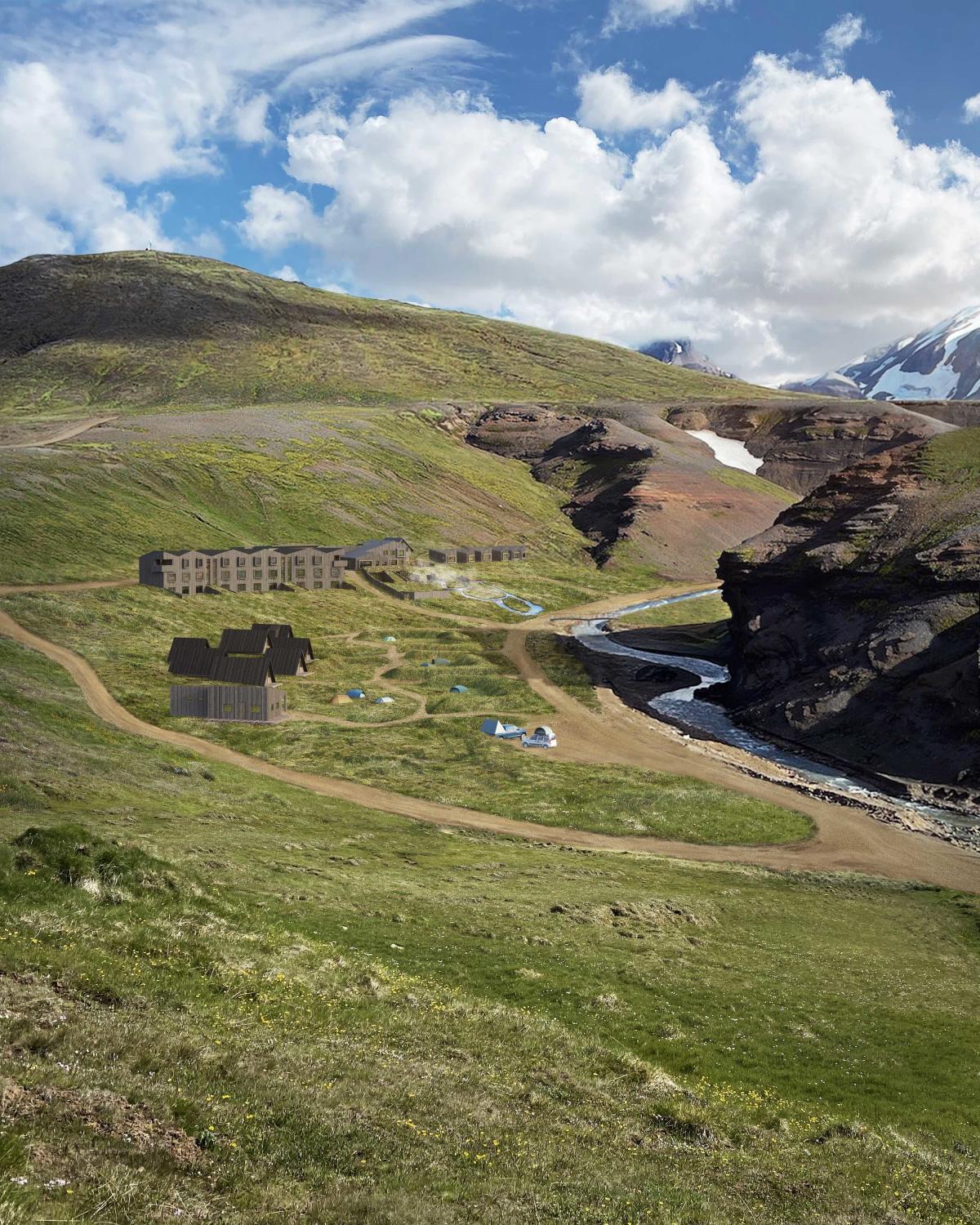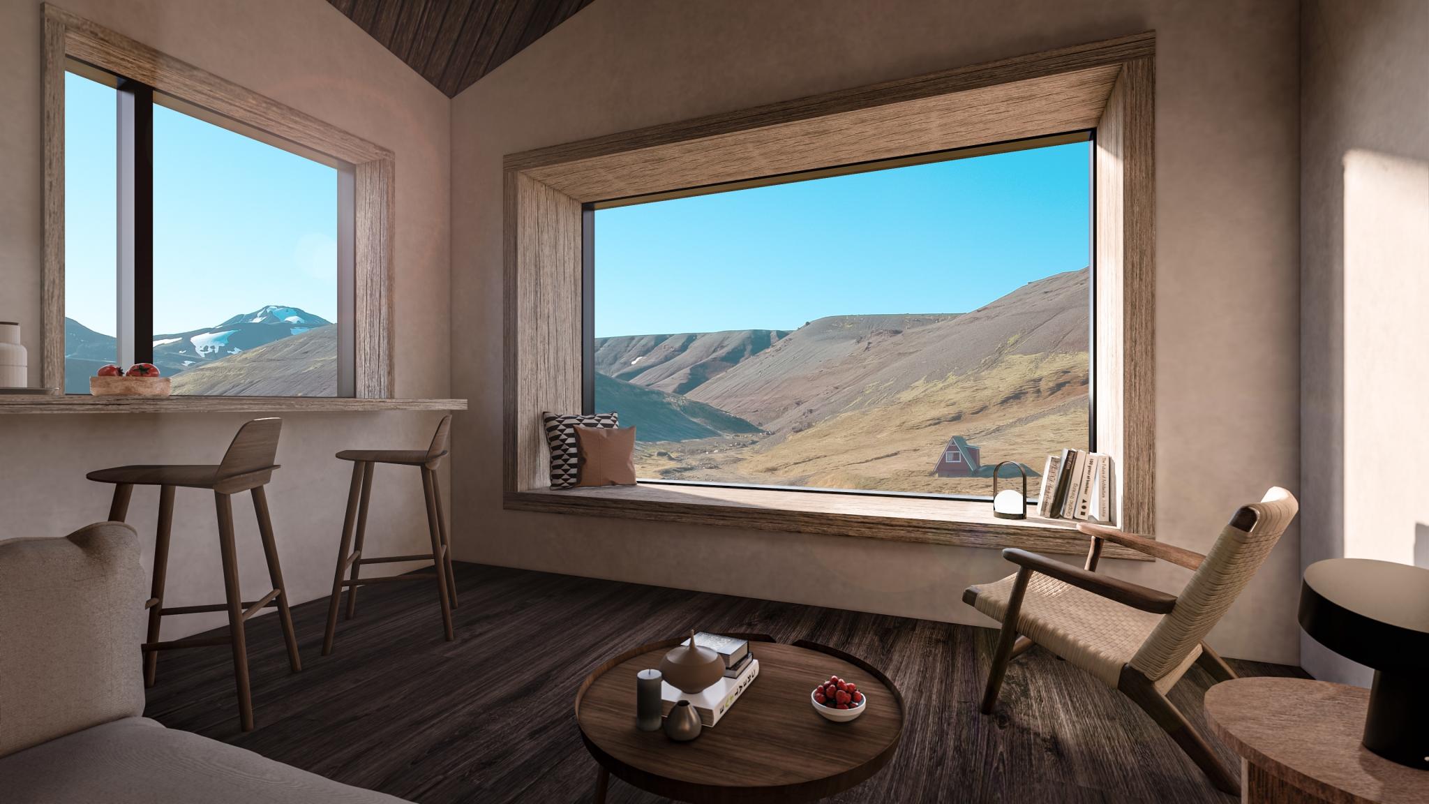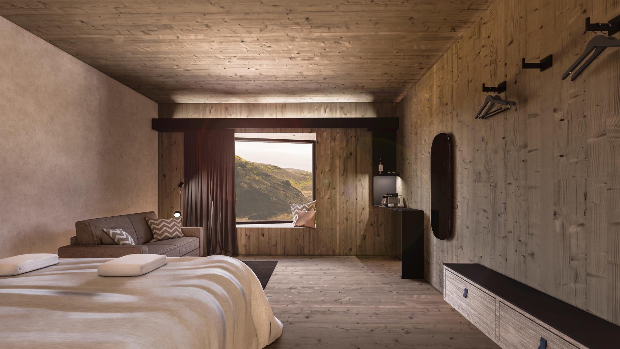 L’ouverture de cet établissement est prévue cet été, et le moins que l’on puisse dire, c’est qu’aucun des futurs clients du resort ne risque de s’ennuyer ! Du logement le plus basique au grand luxe, Kerlingarfjöll Mountain Resort a tout en magasin. Dans le bâtiment principal, le Higland Base Hotel, sont proposées des chambres Deluxe et de belles Suites. Dans l’aile « Heritage », se trouvent des chambres doubles et familiales pour les groupes. Le bâtiment se dresse face à la rivière et aux montagnes. Juste à côté, il y a le restaurant du resort, l’emplacement des bains, prévus pour octobre 2023, et les lodges de l’hôtel.