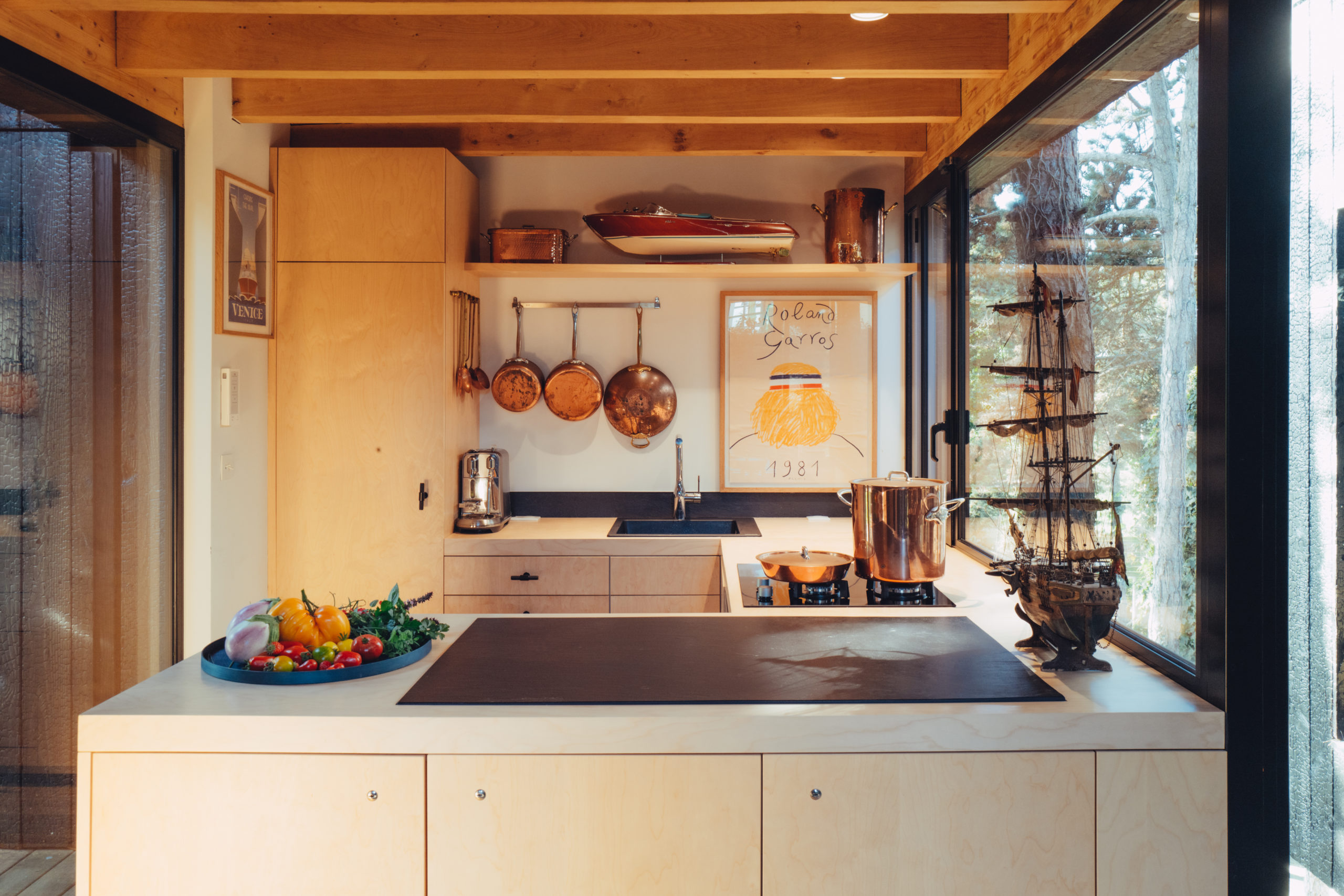 Le chef a réalisé son rêve d’enfance : construire une cabane écologique nichée au milieu des arbres. Une bulle inondée par la douce lumière bretonne et agrémentée d’un potager biologique.