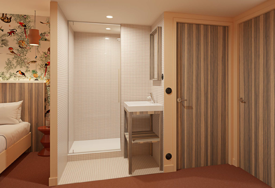 - Olympik : 5 chambres, ayant une superficie de 23.6 à 25.6 m². Lit king size ou lits simples, en fonction des besoins. Bureau, dressing et salle de bain fermée.