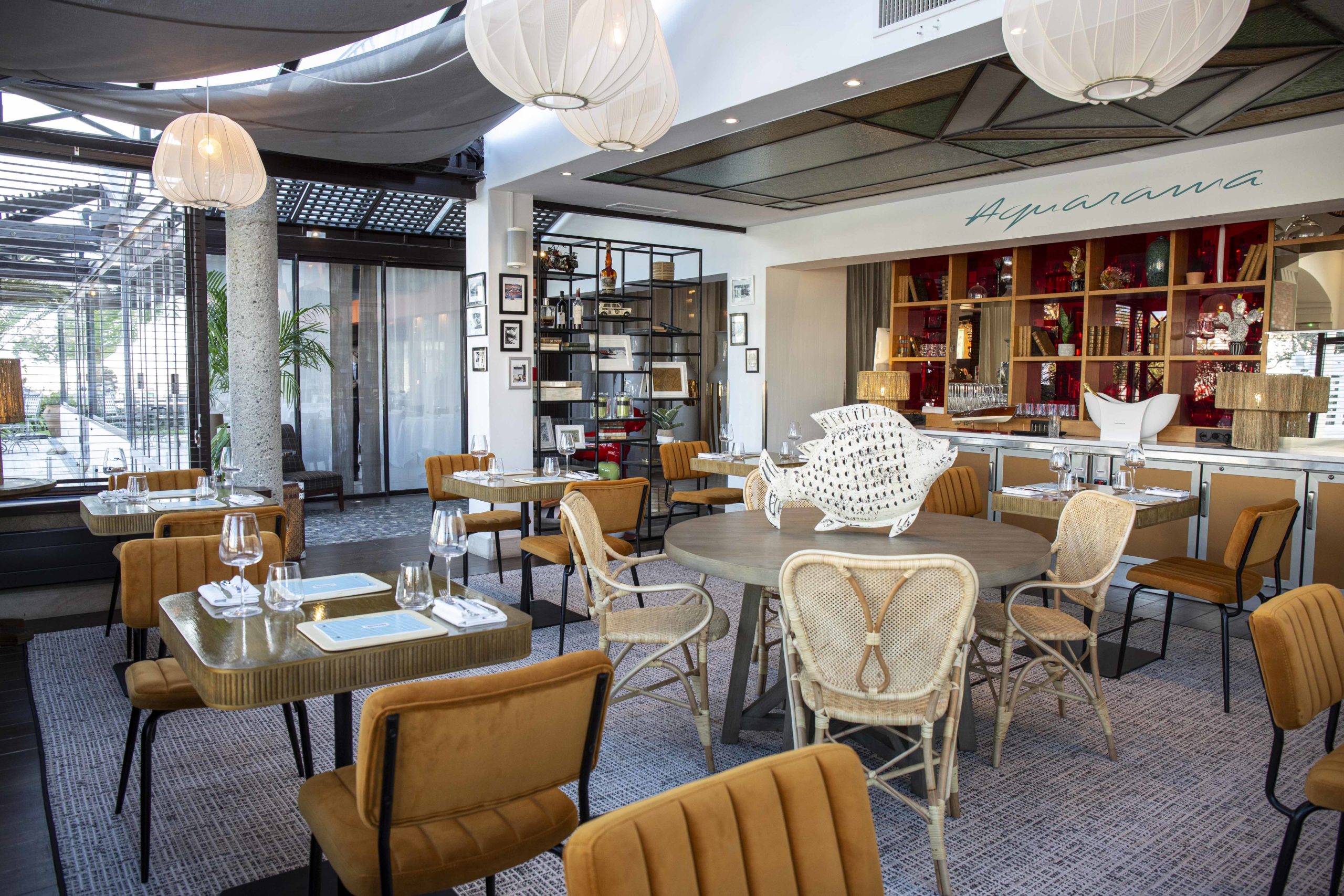 L’art du bien-vivre passe aussi par le plaisir des sens… notamment le goût ! Pour contenter les estomacs de ses clients, L’île de la Lagune propose deux options : un bistro chic, l’Aquarama, ou un restaurant gastronomique, L’Almandin. Là, c’est le Chef Frédéric Bacquié, étoilé pendant quinze ans, qui nous régale. Perdre la reconnaissance du Guide Michelin l’année dernière a été un véritable coup dur pour cet amoureux des produits de la mer. Mais à 43 ans, le Chef ne baisse pas les bras, bien décidé à récupérer le précieux sésame. En attend, il cuisine avec passion des plats sophistiqués mis au service du terroir. Manger à l’Almandin est donc la garantie d’une jolie expérience culinaire. La cerise sur le gâteau ? Les desserts de la pâtissière Christelle Rouquette.
