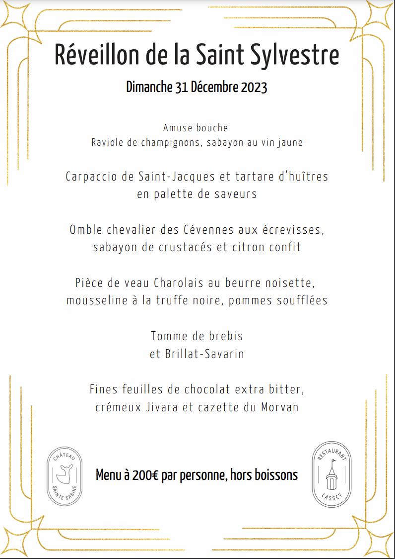 Et si vous habitez ou profitez actuellement d’un séjour en Côte d’Or, attablez-vous au Lassey, le restaurant du Château. Pour la fin d’année, le Chef d’origine bourguignonne Benjamin Linard a prévu deux menus d’exceptions !