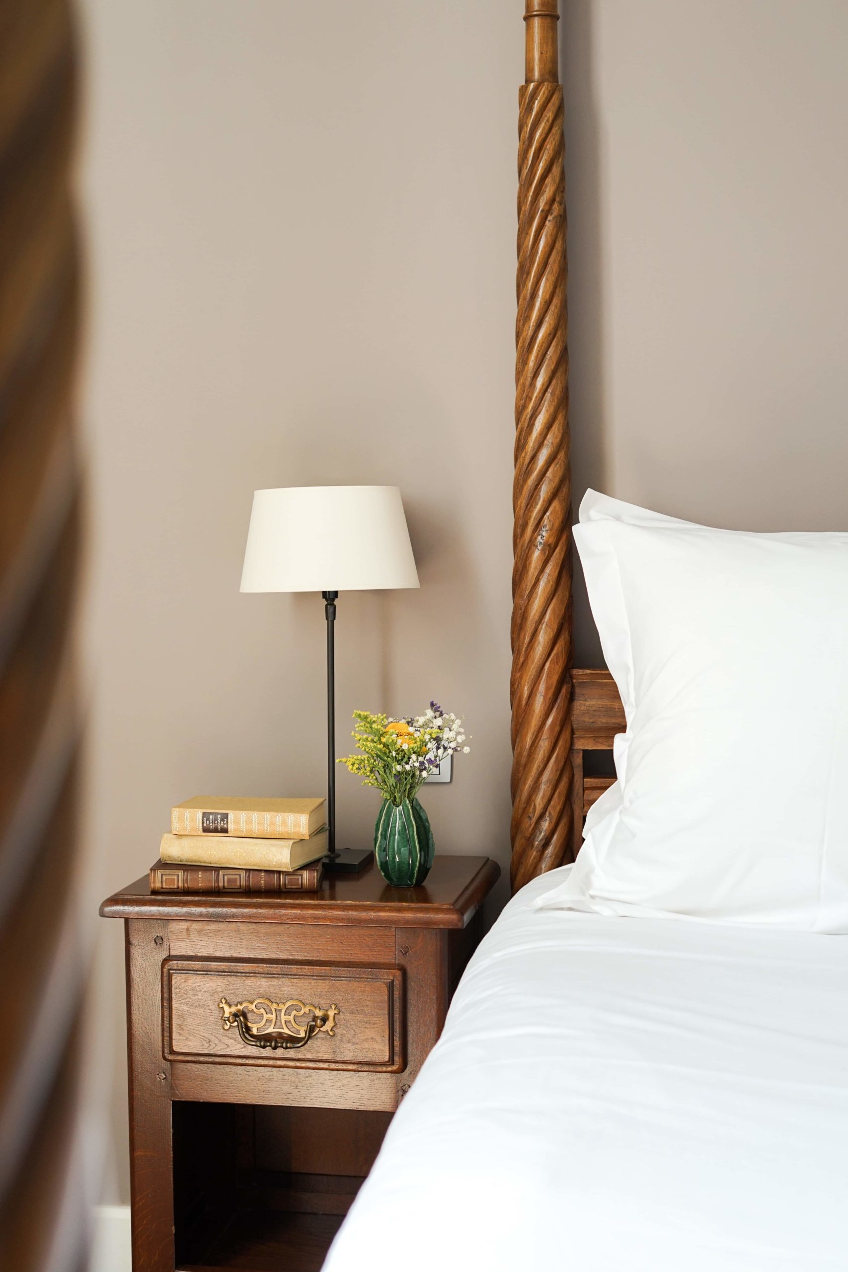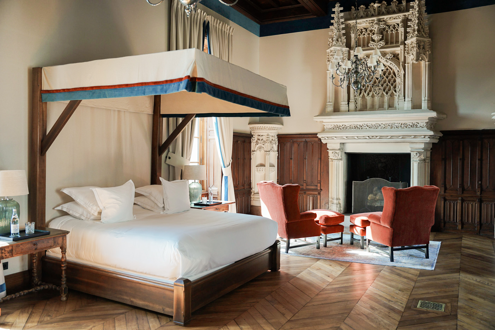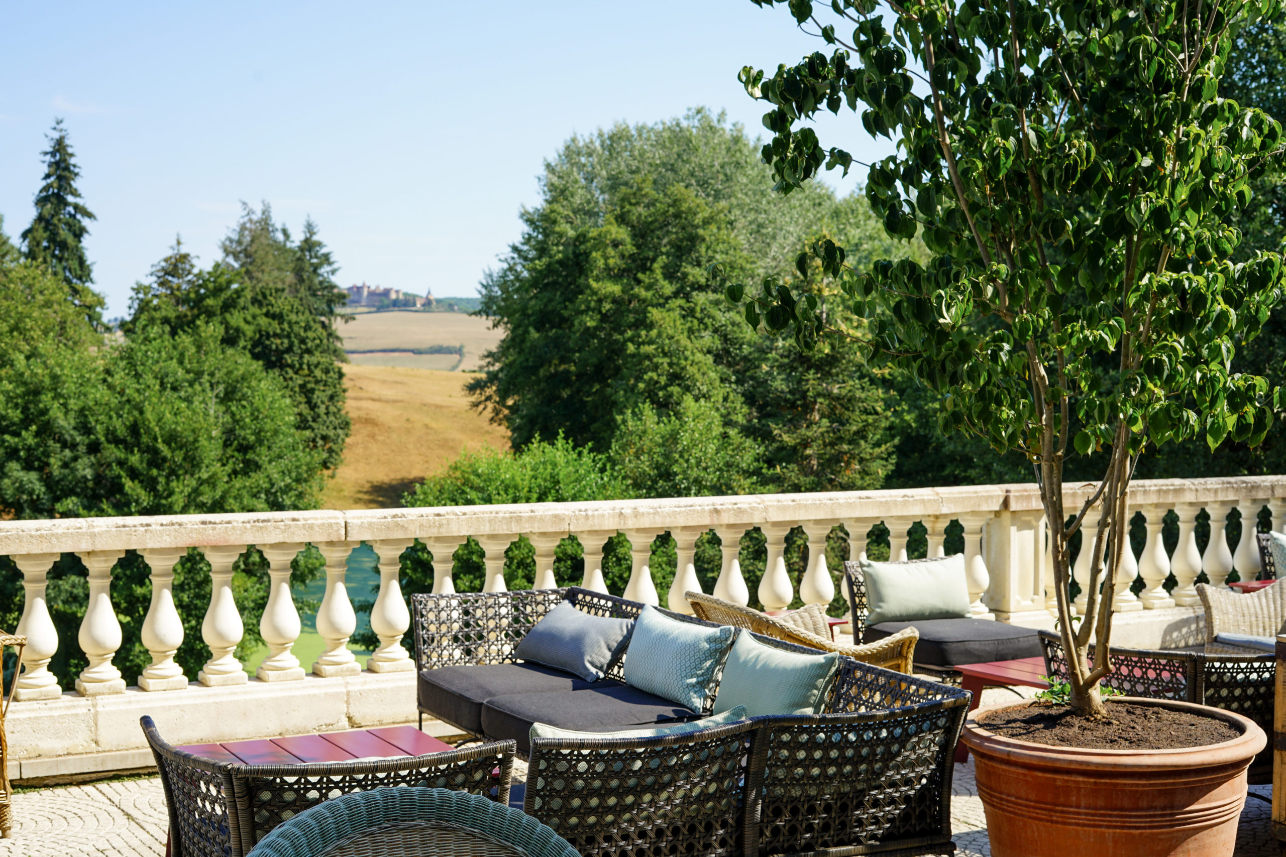 Parmi ces travaux d’embellissements, la cour intérieure a été rhabillée d’un jardin à la française. La piscine est désormais dotée d’une agréable pool-house et la terrasse a été repensée. Le bar et les salons du Château, quant à eux, s’habillent de pièces de mobilier soigneusement chinées ainsi que des étoffes signées Pierre Frey. Enfin, la jadis Salle des Gardes a été transformée en une suite majestueuse de 110 m2. Sa majestueuse cheminée est une fidèle reproduction de celle de la Salle des Gardes du Palais des Ducs de Bourgogne, à Dijon.