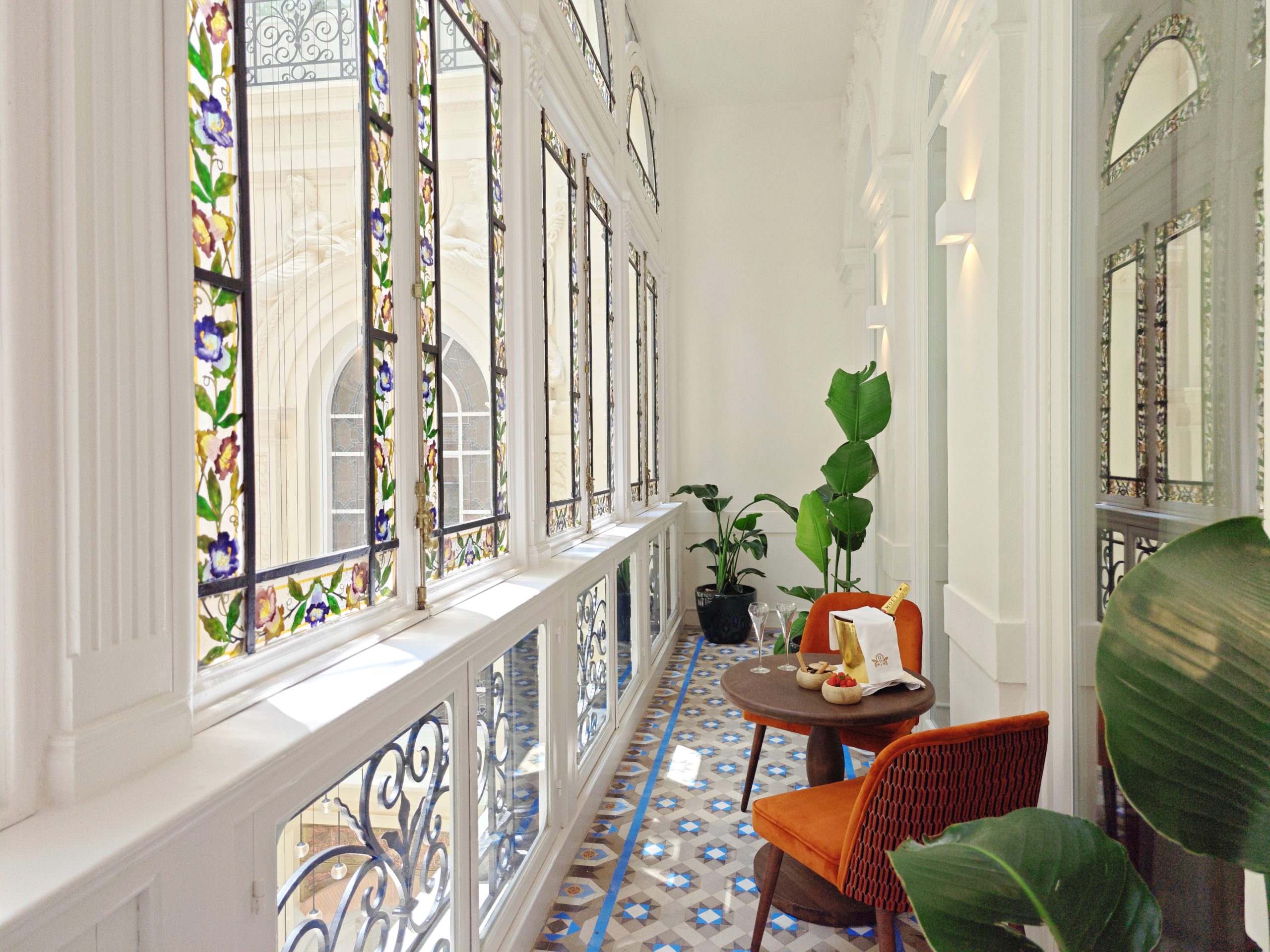 Aujourd’hui, il accueille donc un hôtel 5*. Son design intérieur met en scène les codes de l’élégance du début du XXᵉ siècle. La renaissance de l’Hôtel Royal Hideaway Palacio Gran Vía est le résultat d’un projet de restauration orchestré par l’architecte Carlos Quintanilla. Ce dernier a respecté l’histoire du bâtiment en préservant des éléments architecturaux de grande valeur. On retrouve donc dans l’hôtel les plafonds à caissons d’origine, les planchers chauffants hydrauliques et, même quelques coffres-forts bancaires…