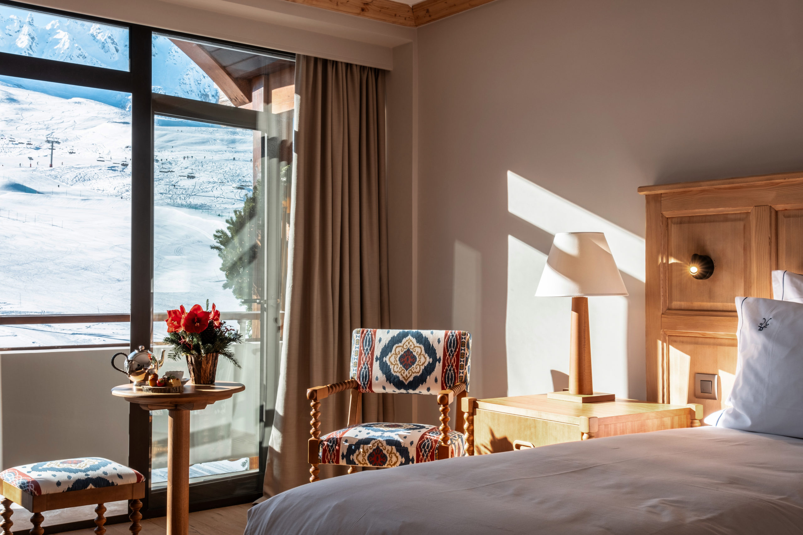 Les 65 nouvelles chambres sont spacieuses (de 28 à 70 m²) et lumineuses. Leur décor fait écho à la vue qu’elles offrent sur les montagnes ou les pistes. Parmi les 65 chambres rénovées, l’hôtel compte 8 suites.