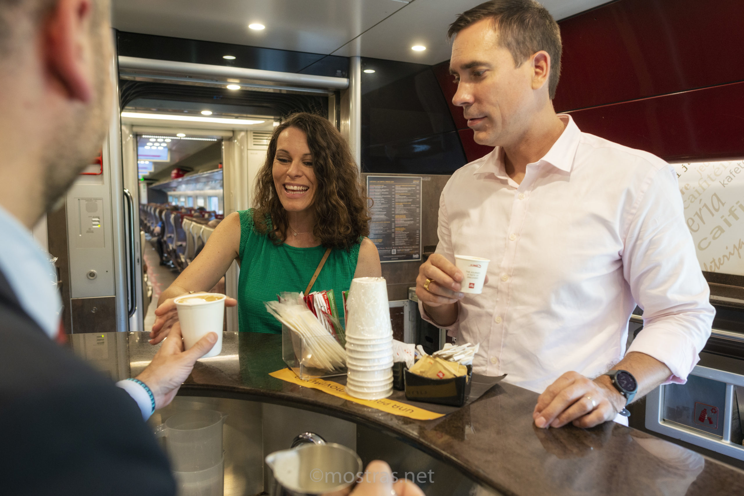En classe Business, on commence son voyage par une boisson chaude accompagnée d’une collation (sucrée ou salée, vegan ou sans gluten). Un trolley passe ensuite avec une vraie machine à café pour compléter l’expérience à l’italienne. Les sièges en cuir, dans lesquels on se love avec délice, sont inclinables et l’espace environnant bien plus large. Mais ça n’est rien comparé à la voiture, intimiste et privilégiée, de la classe Executive. Celle-ci ne compte que dix fauteuils et un personnel de bord est dédié à votre service, à la place et à volonté.
